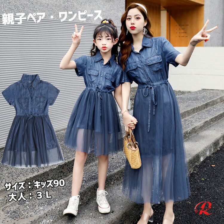 親子ペア ワンピースレディース キッズワンピース デニムパッチワークワンピース 親子 お揃い 服 親子ペアルックでおしゃれを格上げ