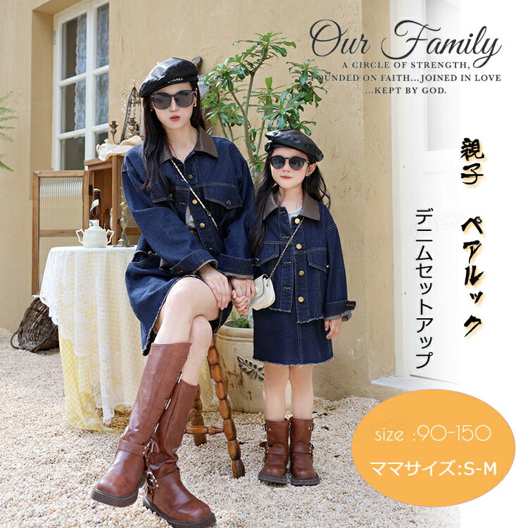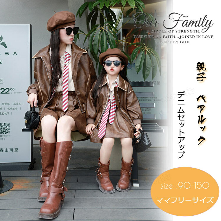 親子ペアルック 秋物 レザーセット 長袖 ジャケット スカート ママと娘 お出かけ 普段着 ご家族旅行