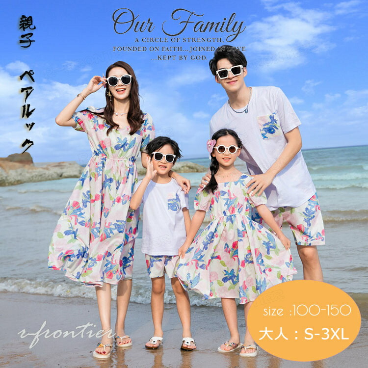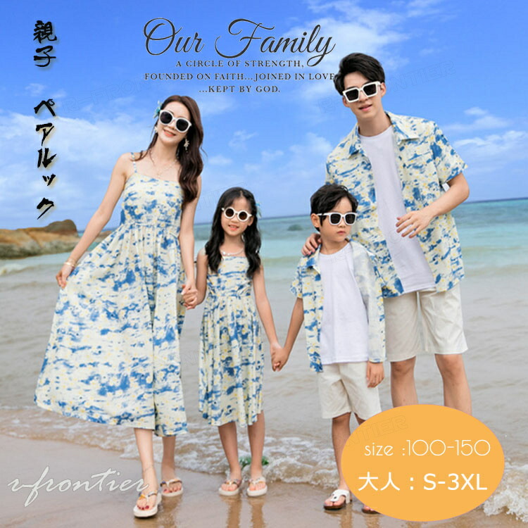 海へ旅行の大活躍 ペアルック ワンピース シャツ 夏服 ママと娘 パパと息子 親子 ポへミア お出かけ 恋人 カップル 普段着 ご家族旅行