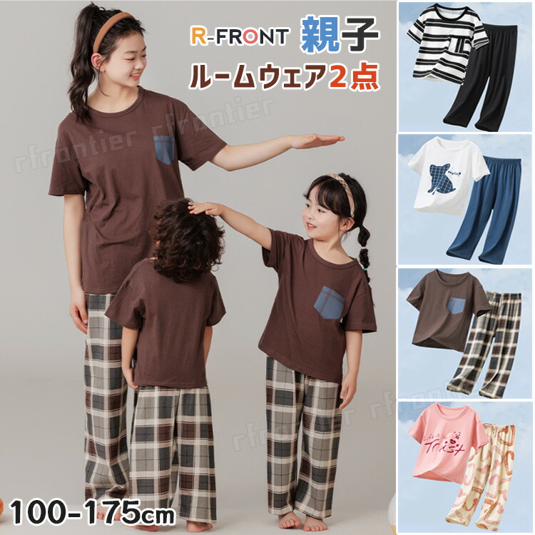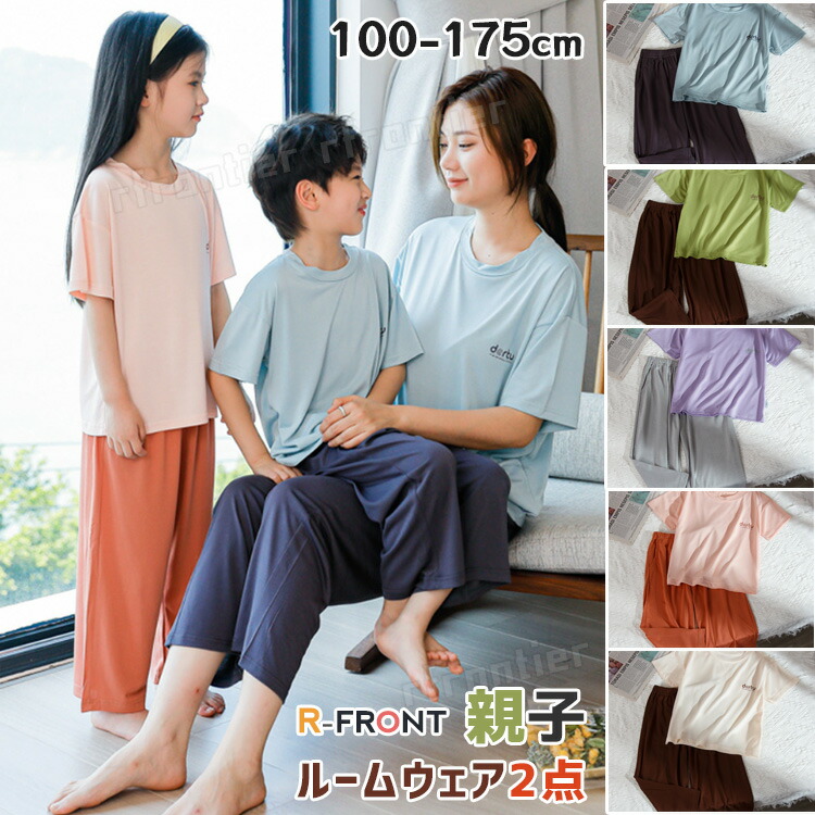 親子ルームウェア 2点セット パジャマ 無地 親子 ペアルック 半袖 トップス ズボン 親子お揃い 親子コーデ ママと娘 ハハ 娘 姉妹お揃い 家族で パパ