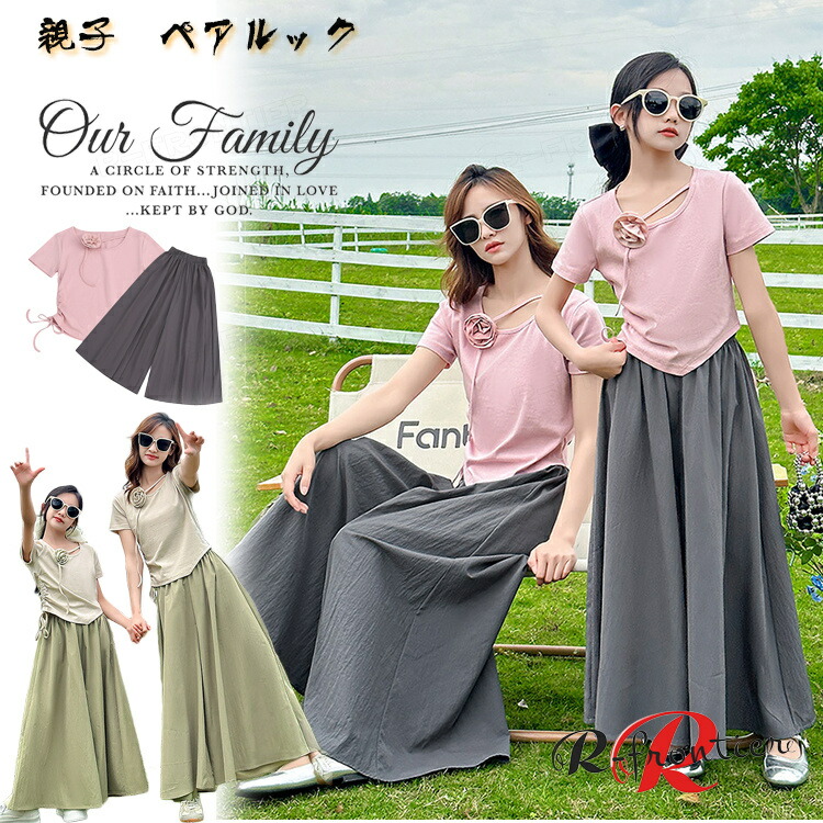 リンクコーデ 親子 セット韓国 半袖tシャツ ガウチョパンツ 子供服 ママと娘 着痩せ 大きいサイズ 夏 女の子 可愛い 誕生日 母の日 プレゼント
