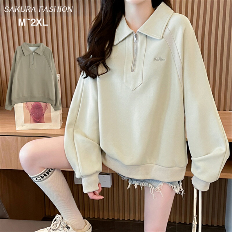 トップス レディース スウェット 春 秋 冬 ハーフジップ ハーフジッパー カジュアル スポーティ スポカジ デイリー ハーフジッパープルオーバー