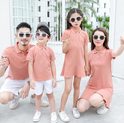 親子ペアシャツワンピース短袖親子お揃いメンズTシャツズボンレディース姉妹ワンピースおそろい親子服 兄弟 姉妹