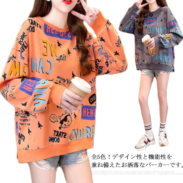 パーカー トレーナー 春秋 プルオーバー ゆったり プリント 可愛い カジュアル オーバーサイズ キレイめ アウトドア 普段着 お出かけ トップス お洒落
