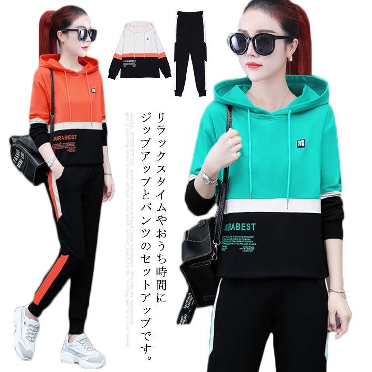 ジャージ 上下セット レディース 長袖 ジップアップ セットアップ パーカー フード付き 通学 おしゃれ 新作 長袖