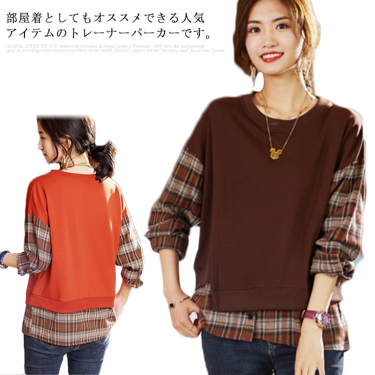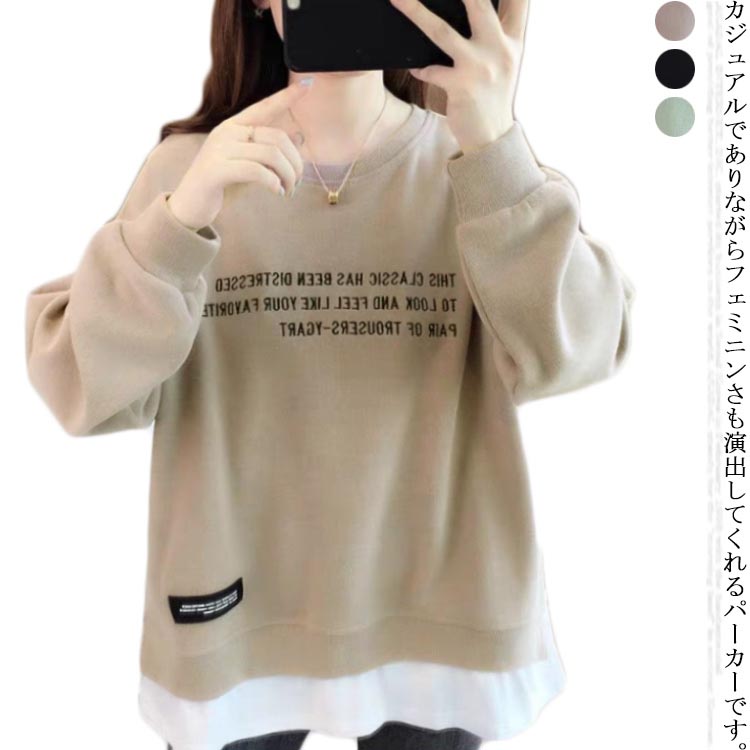 トレーナー 春秋 プルオーバー ゆったり 薄手 体型カバー 可愛い カジュアル オーバーサイズ キレイめ アウトドア 普段着 レイヤード風