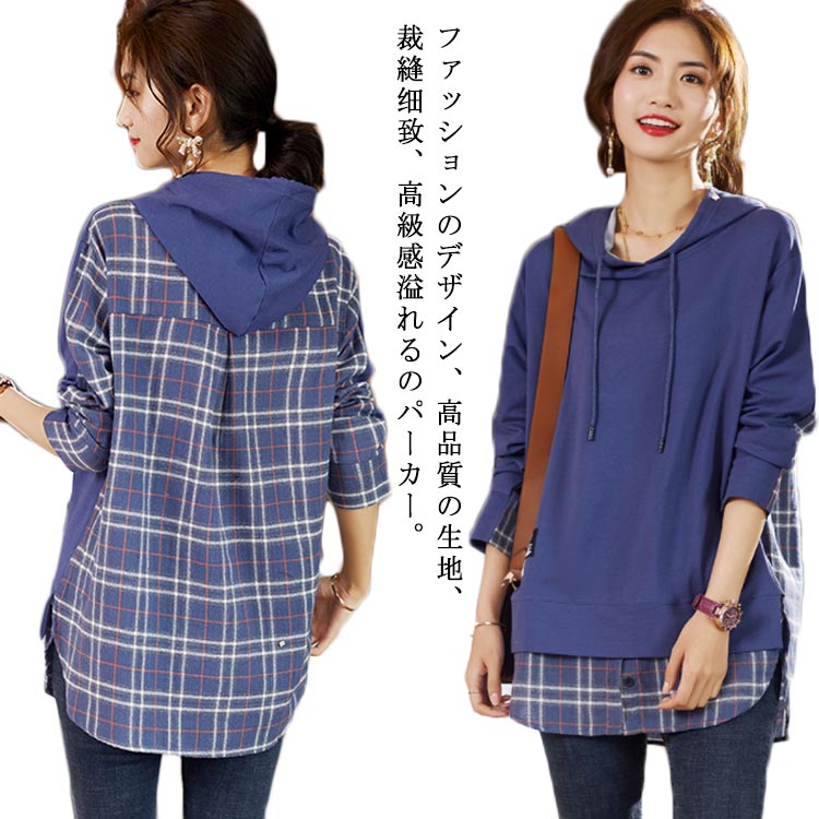 パーカー レディース 大きサイズ プルオーバーパーカー フード付き カジュアル 通学 レイヤード スウエット トレーナー トップス