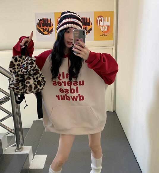2カラーパーカートップストレーナースウェット長袖大きいサイズビッグゆったりフーディーダンス衣装ヒップホップレディースガールズストリート奇抜派手韓国大人服おしゃれ可愛い
