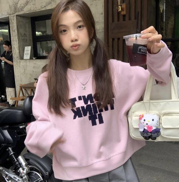 ♪~展開♪3色レトロトレーナーロゴ長袖スウェットトップスカットソー短い短め大きいサイズビッグゆったりダンス衣装ヒップホップレディースガールズストリート韓国おしゃれ奇抜派手個性的