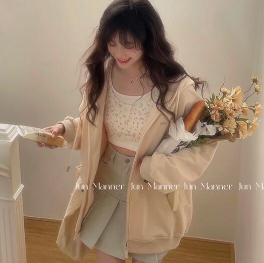 ♪M~2XL展開♪パーカー2色長袖フード前開きフーディージップアップトレーナーチャックポケットトップスカットソーダンス衣装ヒップホップHIPHOPレディースガールズストリートガーリー韓国おしゃれシンプ