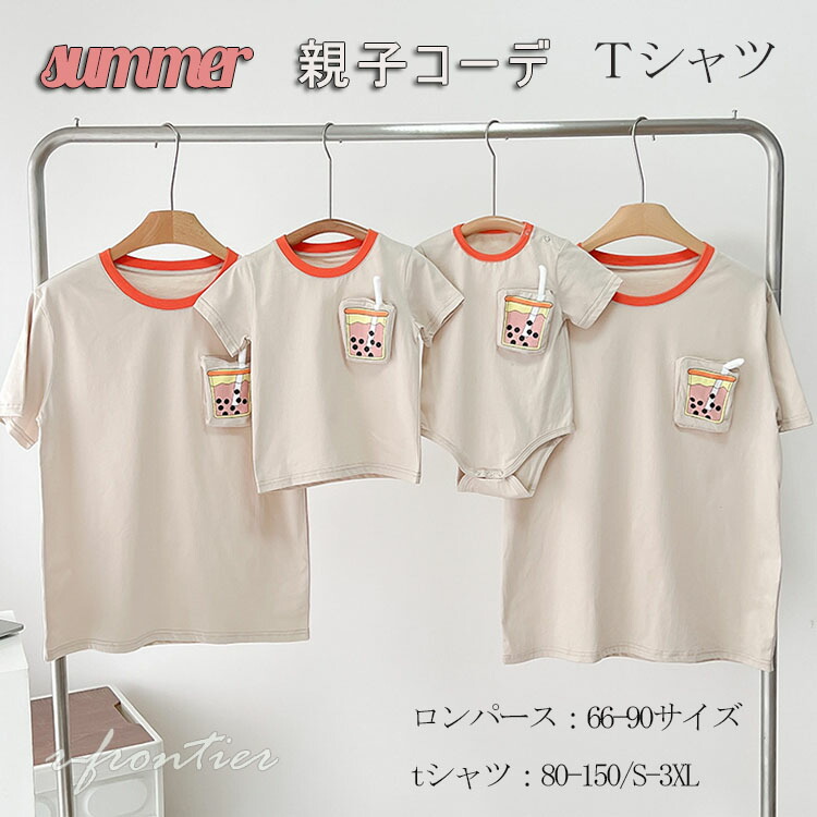 親子 ペアルック リンクコーデ 赤ちゃん ロンパース タピオカティー 服 親子ペア シャツ 親子コーデ パパ 赤ちゃん 母の日 父の日 夫婦 恋人 誕生日 プレゼント 3枚
