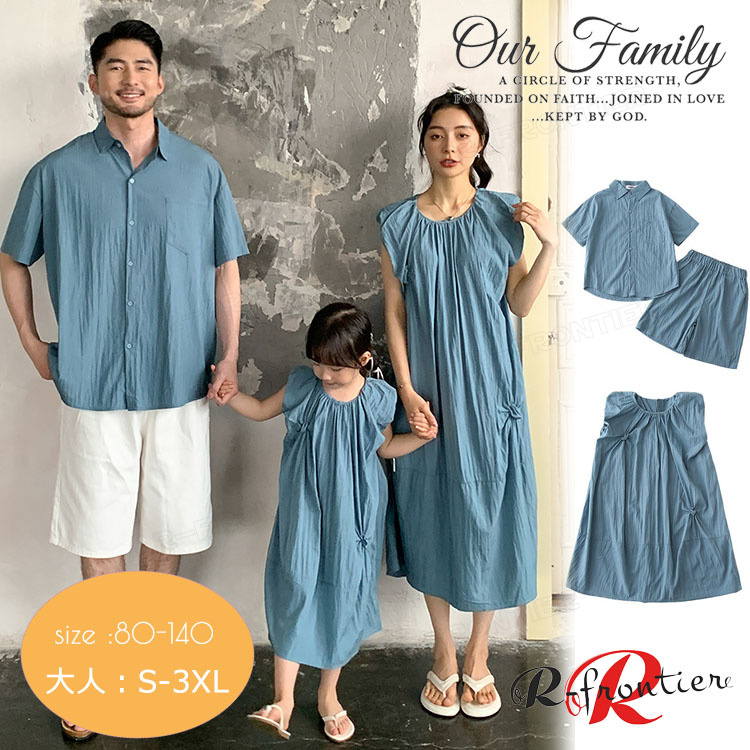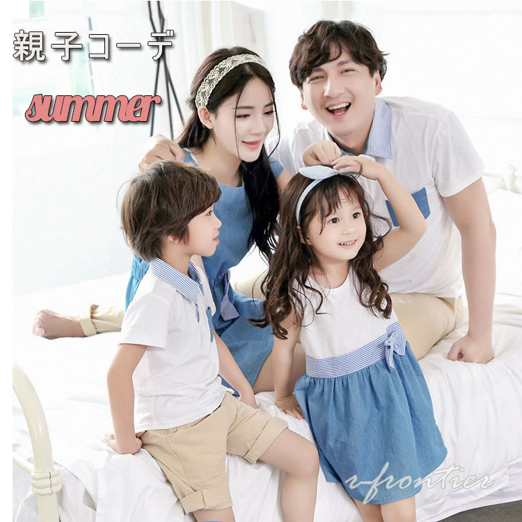 リンクコーデ 親子 セット 親子 ペアルック 親子コーデ 親子 ペアシャツ 親子 パパ ペア シャツ ワンピース 親子ワンピース ネイビー 半袖 2枚