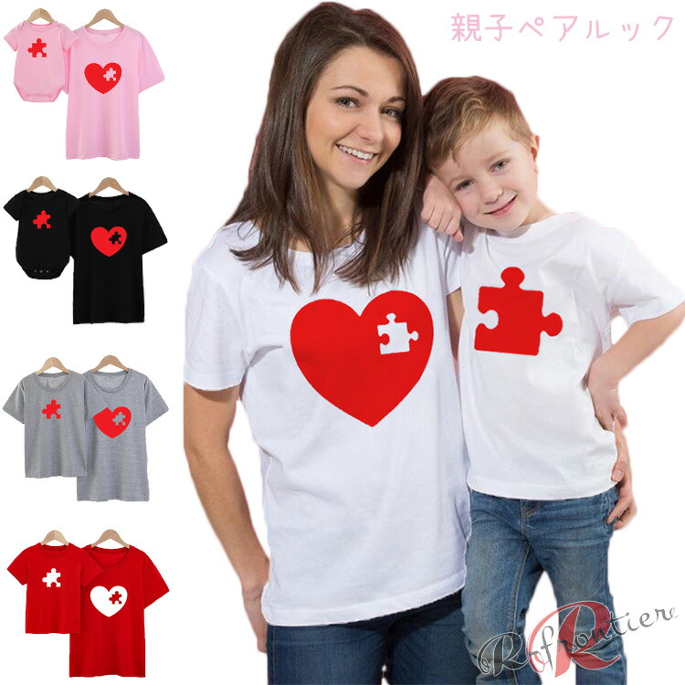 パズルハート 親子 ペアルック 赤ちゃん ロンパース 親子コーデ tシャツ 赤ちゃん ハート パズル リンクコーデ 親子 セット 親子 ペアルック ロンパース 親子 ペアtシャツ プレゼント