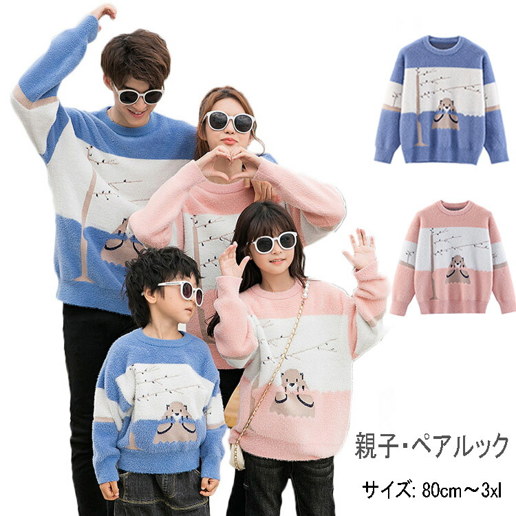 リンクコーデ 親子 セット 秋 親子 ペアルック 親子 ペアセーターベージュ 無地 あったかい 子供服 80 90 100 110 120 130 S M L XL 2XL 3XL 誕生日 プレゼント