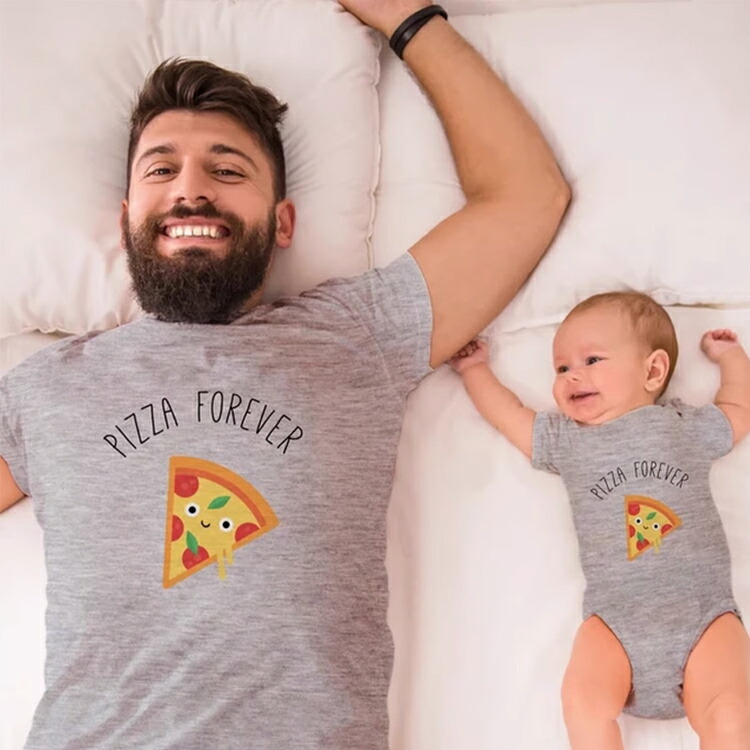 親子ペア ピザ 親子 ペアルック 赤ちゃん ロンパース パパ ママ 夏 親子ペアルックtシャツ リンクコーデは誕生日プレゼントとしても最高♪おもしろい tシャツ