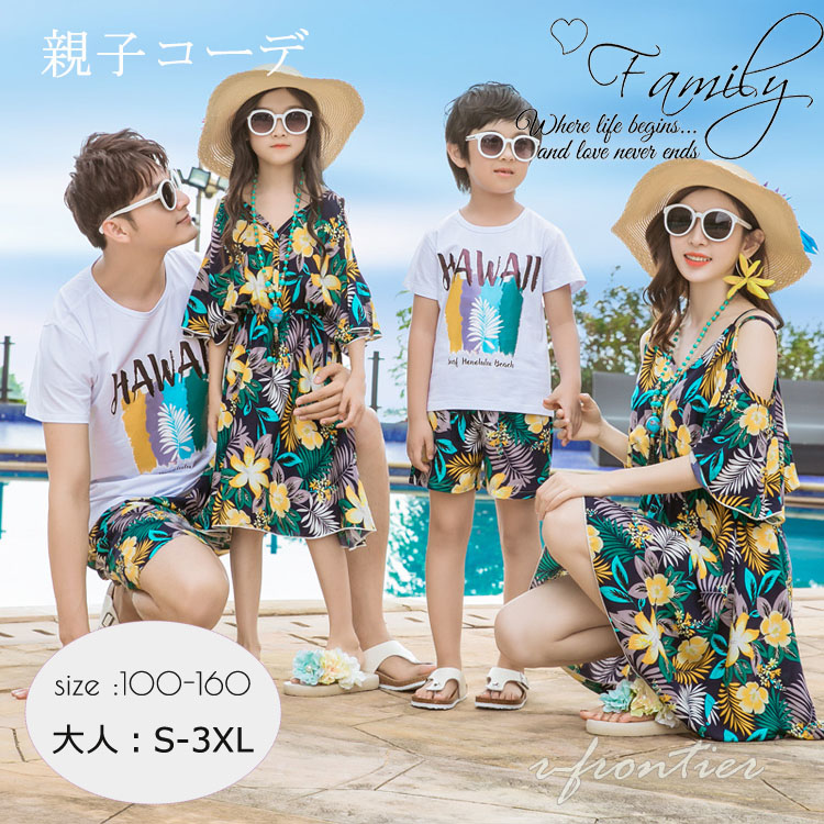 海へ旅行の大活躍 ペアルック ワンピース シャツ 夏服 ママと娘 パパと息子 親子 ポへミア お出かけ 恋人 カップル 普段着 ご家族旅行