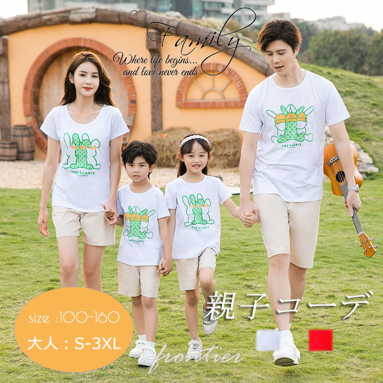 リンクコーデ 親子 セット 親子 ペアルック 親子コーデ 親子 ペアtシャツ 親子 パパ ペア tシャツ 半袖 ホワイト 家族お揃い オレンジ 半袖 2枚