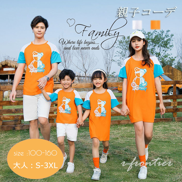リンクコーデ 親子 セット 親子 ペアルック 親子コーデ 親子 ペアtシャツ 親子 パパ ペア tシャツ ワンピース 親子ワンピース 白 オレンジ 半袖 2枚