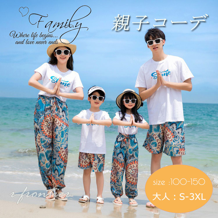 海へ旅行の大活躍 ペアルック シャツ ワイドパンツ 夏服 ママと娘 パパと息子 親子 お出かけ 恋人 カップル 普段着 ご家族旅行