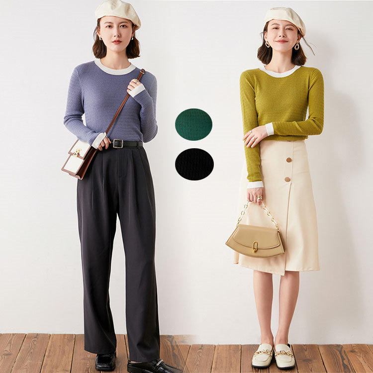 セーター ネック 無地 カットソー レデイース トップス おしゃれ ニット 春秋 長袖 タイト 同窓会 普段着 着やせ ベーシック ホワイト ブラック ピンク ブルー カジュアル お出かけ -0