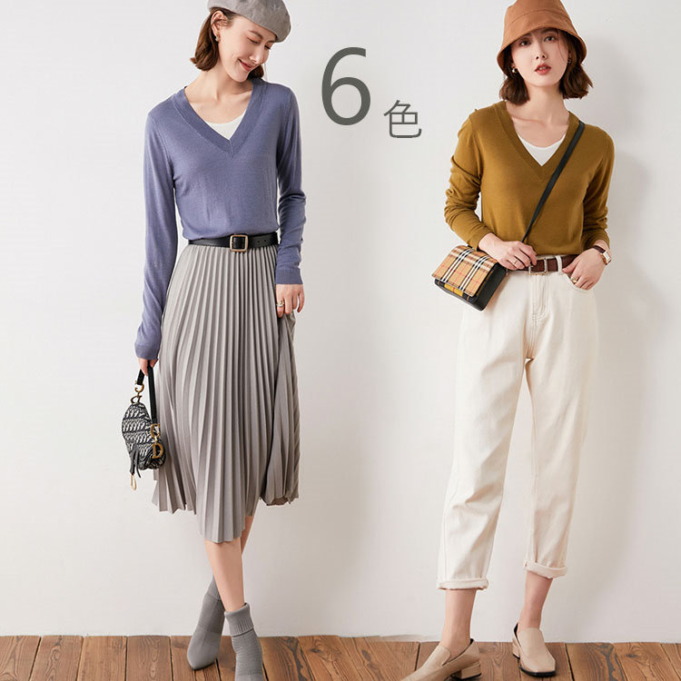 セーター Vネック 無地 カットソー レデイース トップス おしゃれ 可愛い カジュアル お出かけ ニット 春秋 長袖 タイト 同窓会 普段着 着やせ ベーシック 7色選べる MY-040