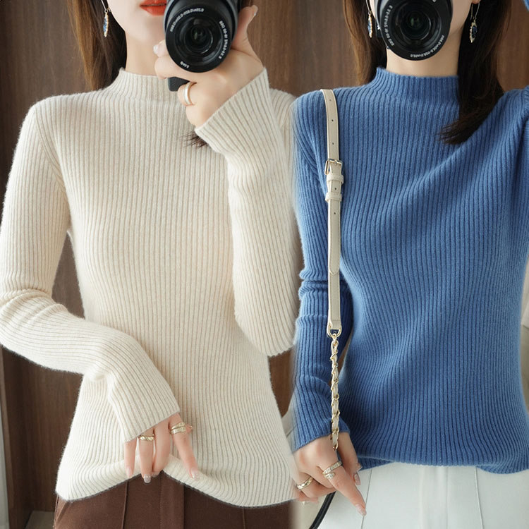 セーター ハイネック 無地 カットソー レデイース トップス おしゃれ ベーシック カジュアル お出かけ ニット 春秋 長袖 タイト 同窓会 普段着 着やせ 7色選べる -039