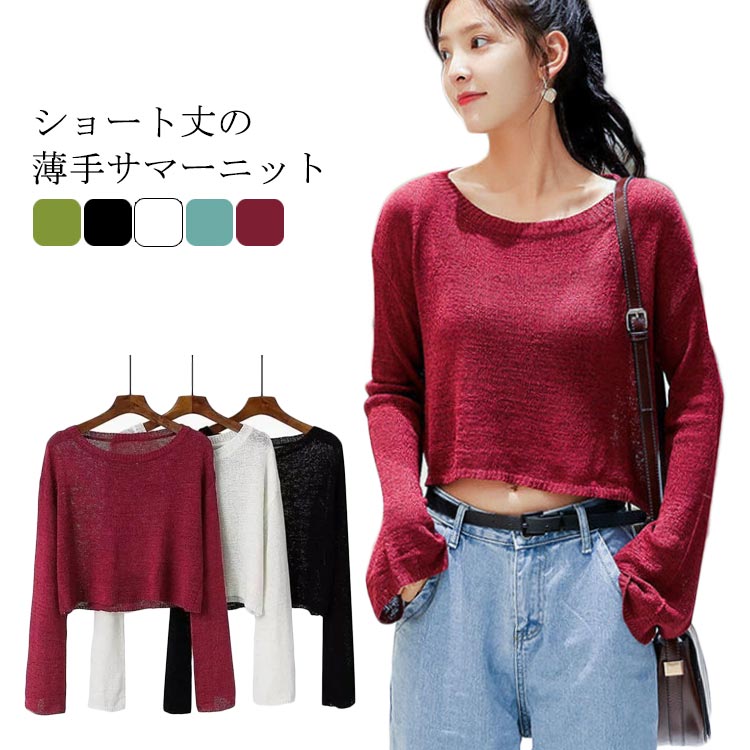 セーター ネック カットソー レデイース トップス おしゃれ 無地 カジュアル お出かけ ニット 春秋 同窓会 長袖 ショート丈 体型カバー 普段着 着やせ 12色選べる -033