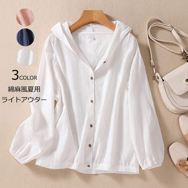 アウター レディース 綿麻 秋 冷房対応 初秋 パーカー アウター レディース 綿麻 ライトアウター 夏 春 長袖 シャツ トップス ブラウス 薄手 無地 シャツ