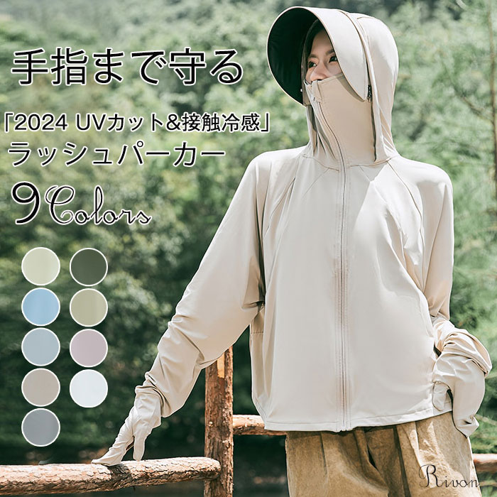 ひんやり 涼しい 接触冷感 UV ラッシュガード フード付き 日焼け止めパーカーレディースファッション トップス パーカー