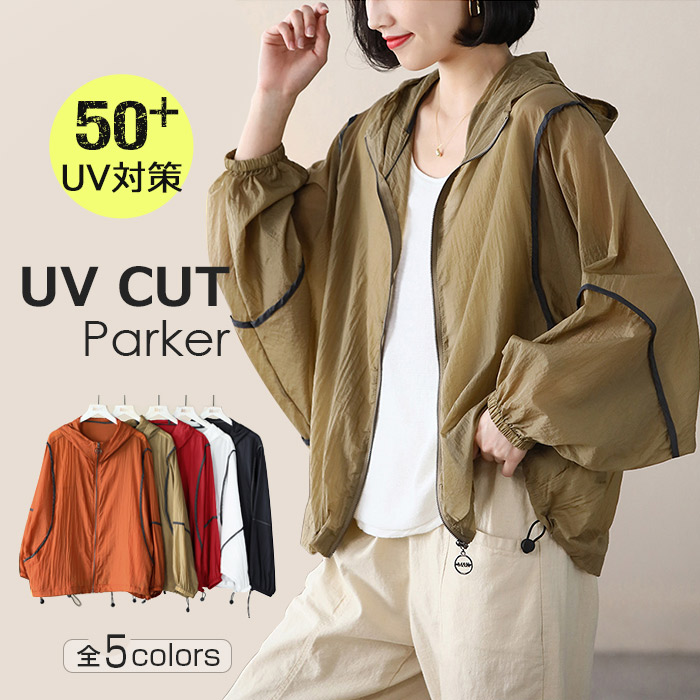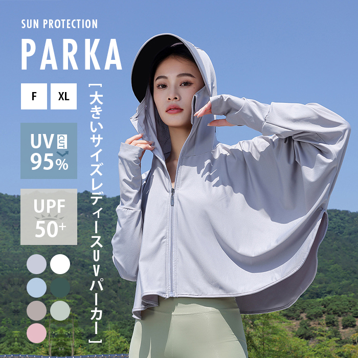 UVパーカー 紫外線防止 長袖 カジュアル lady's parka パーカーフード付 顔の日焼け対策もバッチリ 体型カバー ゆったりタイプ