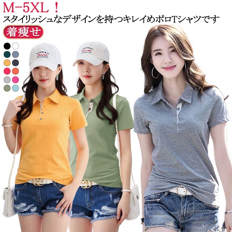 無地 半袖 Tシャツ POLO ポロシャツ 夏物 ゴルフウェア お洒落 スポーツウェア トップスレディースファッション トップス ポロシャツ