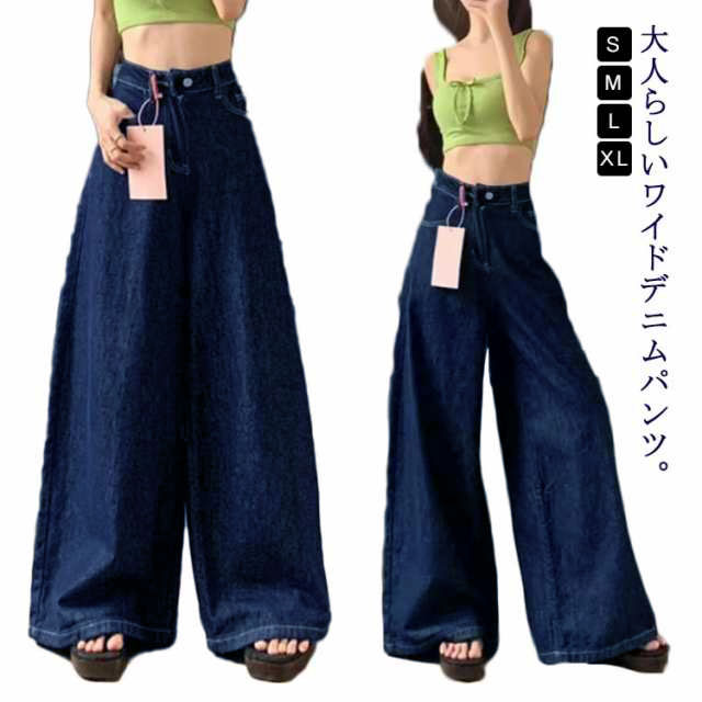 デニム パンツ レディース ストレートパンツ ジーンズ ボトムス 長ズボン ロング ゆったり ワイドパンツ 体型カバー