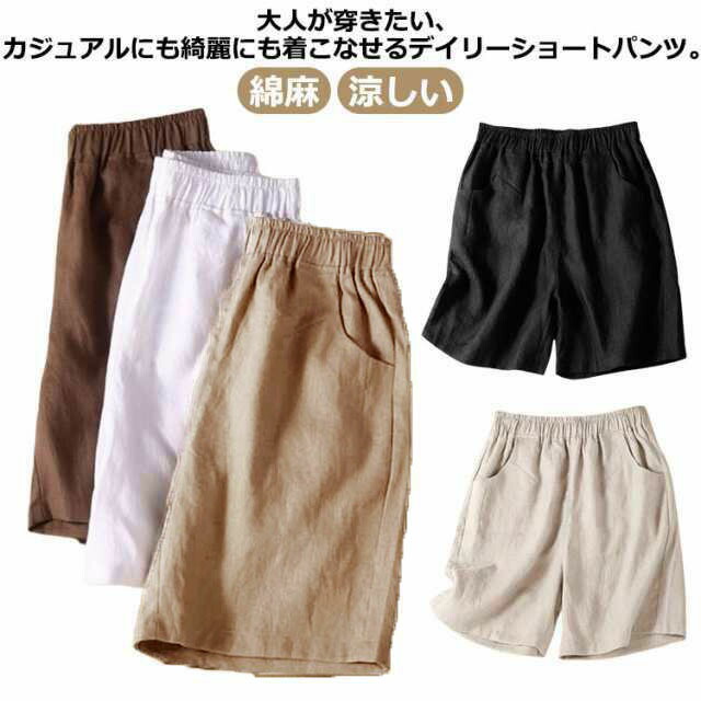 リネン パンツ 5分丈 レディース 綿麻パンツ サマー パンツ ハーフパンツ 春夏 カジュアル 無地 ポケット 涼しい 快適