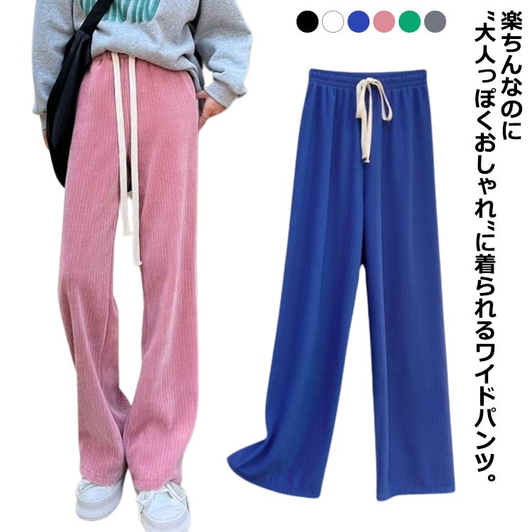春秋 きれいめ リブパンツ らくちん パンツ ワイドパンツ レディース パンツ イージーパンツ 春 秋 ウエストゴム 無地