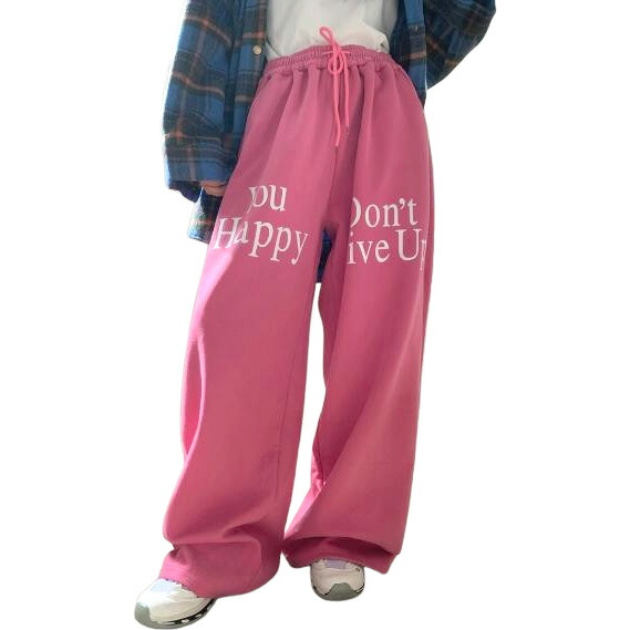 ロゴ裏起毛パンツズボンボトムススウェット ロングワイド太い太め大きいサイズビッグゆったりハイウエストポケットダンス衣装ヒップホップレディースメンズガールズ個性的奇抜
