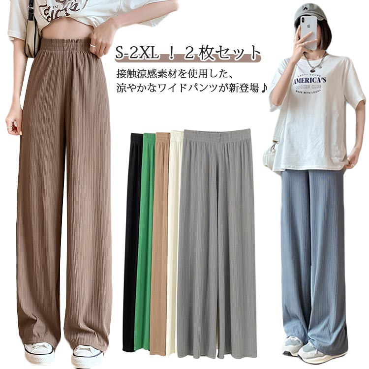 ワイドパンツ レディース 夏 冷感パンツ 涼感 涼しい ワイド ロングパンツ さらさら 薄手 ボトムス きれいめ