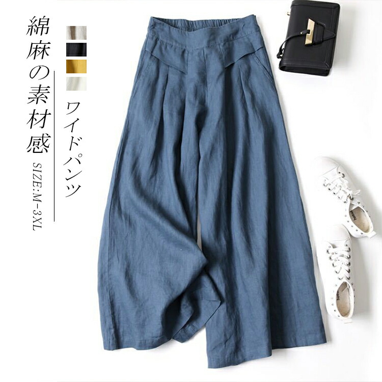 新色追加 さらっとした気軽さが魅力の綿麻ワイドパンツ パンツ ガウチョパンツ パンツ ワイド ガウチョ 涼しい 夏 春 秋 きれいめ 美脚