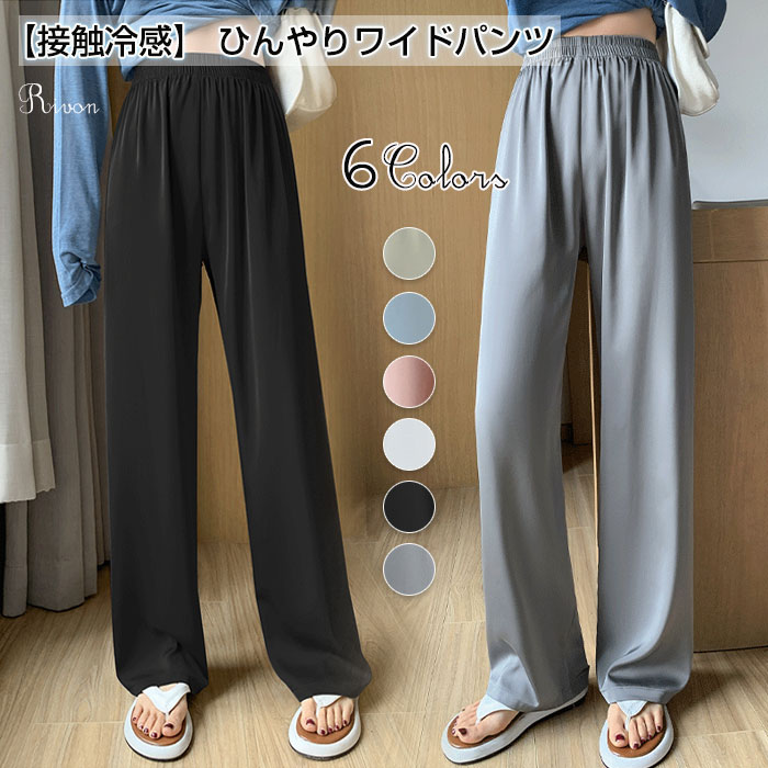 アイスシルクワイドパンツ ストレートパンツ 接触冷感 ゆったり 涼しい ロングパンツ 薄手 快適 無地 ウエストゴム