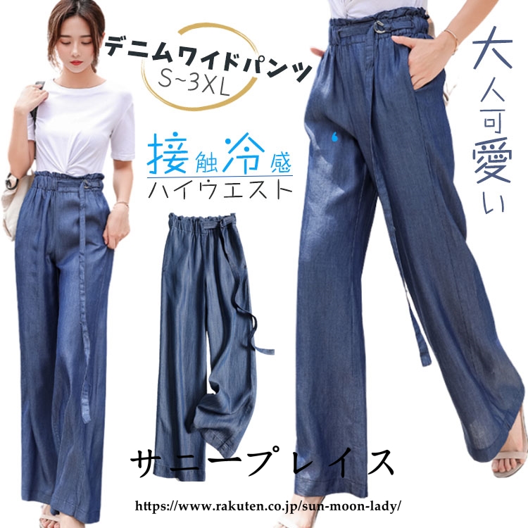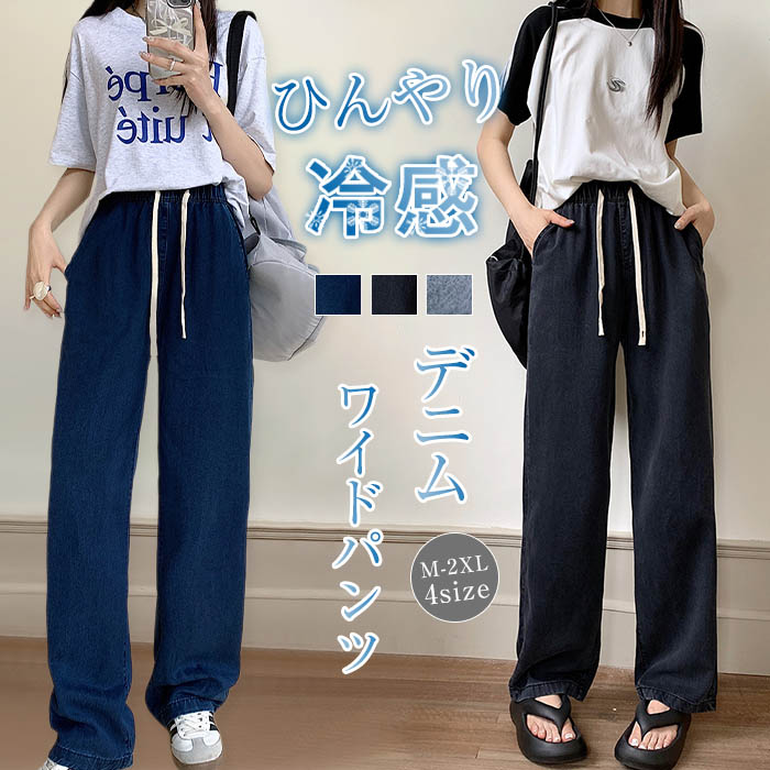 接触冷感で夏にも涼しく軽い これから暑くなる季節にぴったり さらりと軽やかな薄手デニムワイドパンツレディースファッション ボトムス パンツ