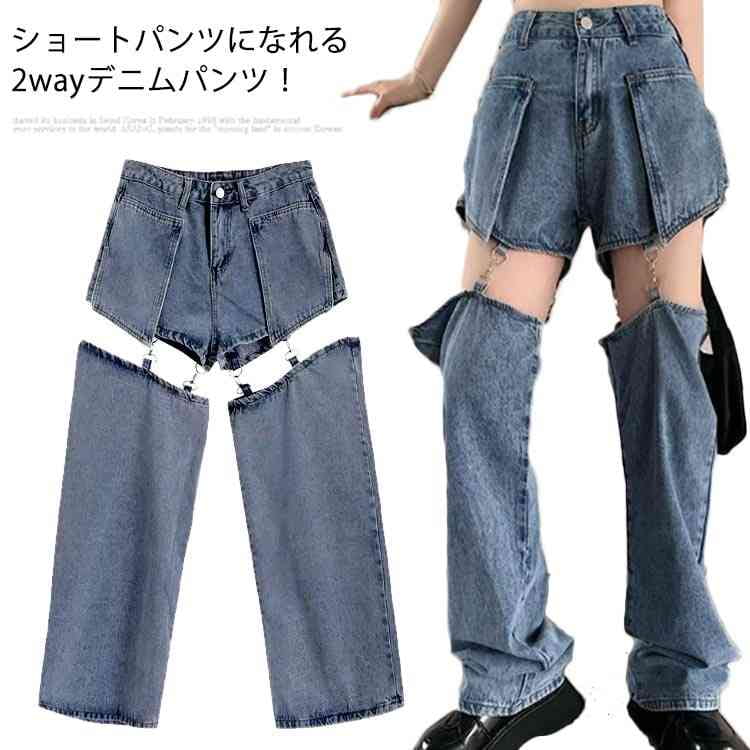 2WAY ストリート系 ロングパンツ ショートパンツ デニムパンツレディースファッション ボトムス パンツ