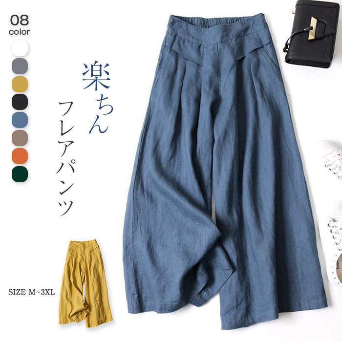 フレアパンツ レディース ワイドパンツ レディース きれいめ パンツ 綿麻 春 パンツ 夏 ガウチョパンツ レディース 大きいサイズ ゆったり 薄手 リネンパンツ 美脚 ボトムス 体型カバー