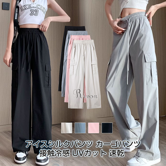 アイスシルクワイドパンツ ストレートパンツ 接触冷感 uvカット ゆったり 涼しい ロングパンツ スポーツパンツ 薄手 快適 無地 ウエストゴム 調節紐