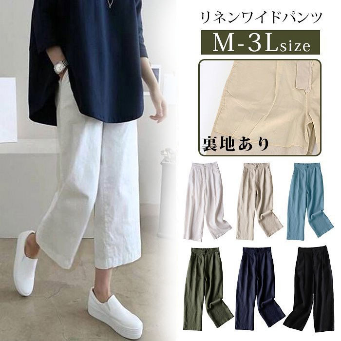 ワイドパンツ はコットンとリネンで作られており、より快適で美しく、体の欠陥をカバーできます どんな体型の方にもお勧めできるイージーパンツボトムスですよ