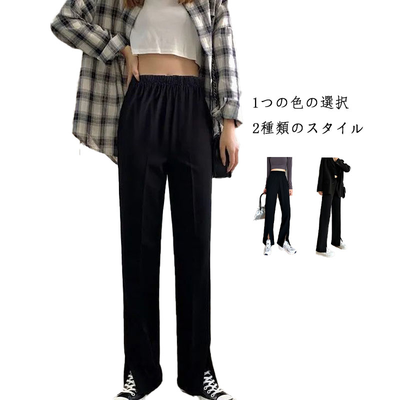 長ズボン ワイドパンツ ストレートパンツ イージーパンツ レディース ボトムス カジュアル ハイウエスト
