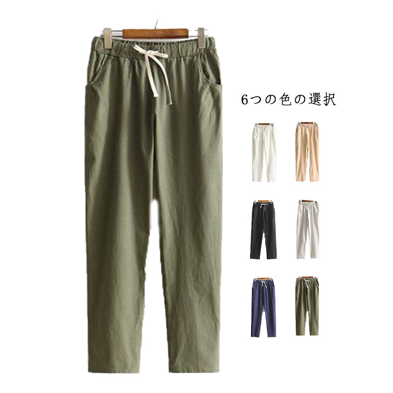 カジュアルパンツ イージーパンツ テーパード パンツ 麻混パンツ 綿麻 カジュアル スリムレディースファッション ボトムス パンツ