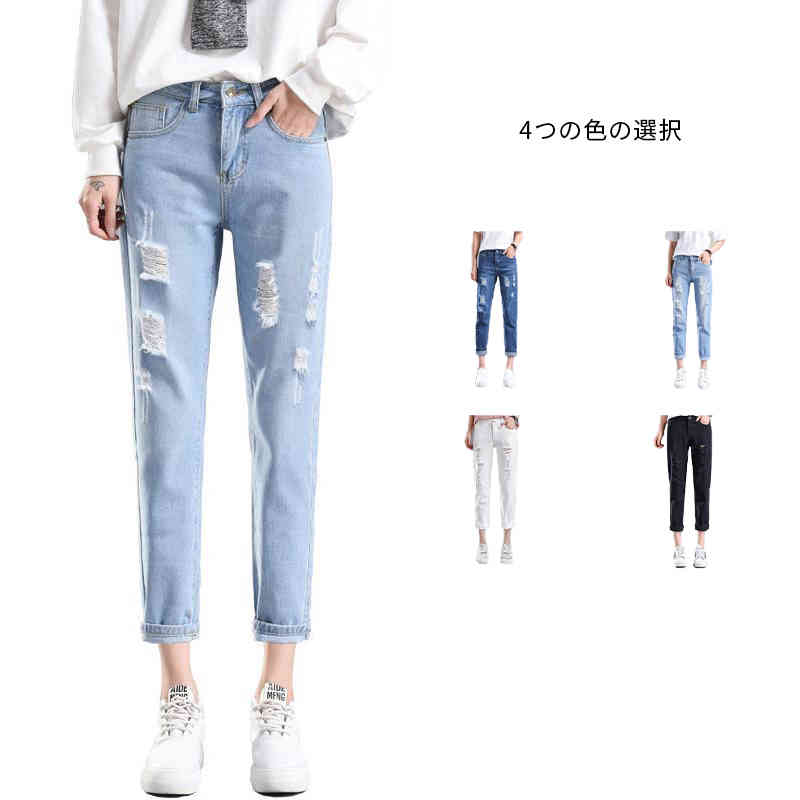 スキニー 美脚デニム レディース ダメージ クロプドデニムパンツ 七分丈 デニム パンツ ストレッチパンツ ジーンズ