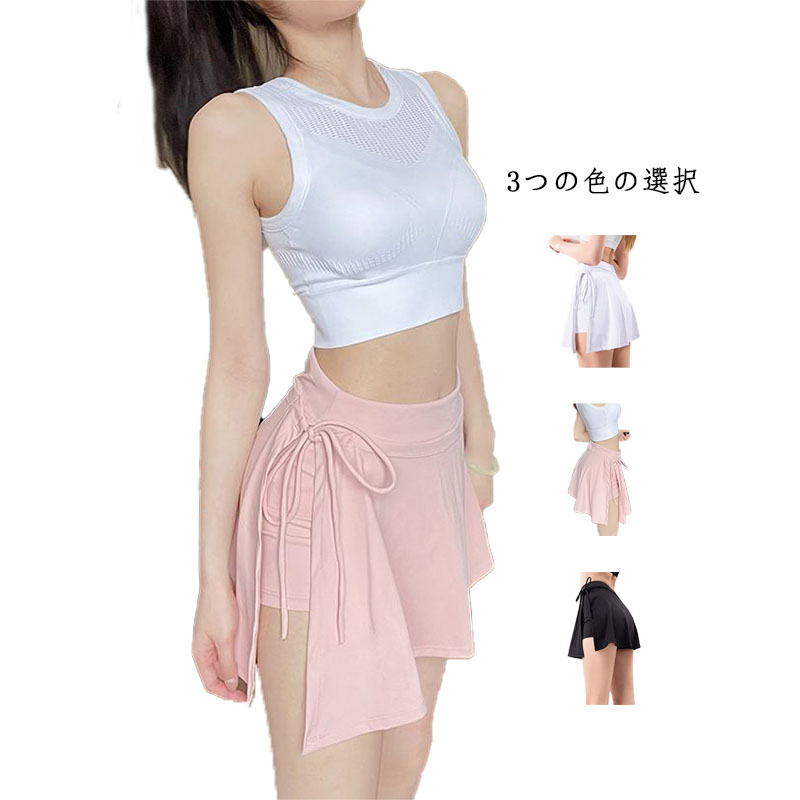 レディース ゴルフウェア ゴルフ テニス ランニング スイムスカート 体型カバー インナー付 無地スカート テニススカート