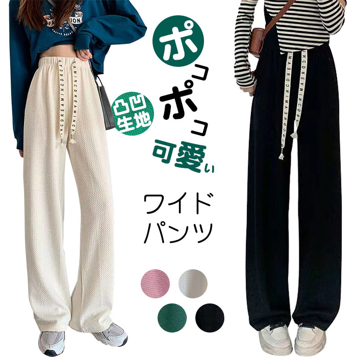さらてろ凸凹エンボス加工ワイドパンツ新登場 ポコポコ可愛ワイドパンツ 大きいサイズ 韓国レディースファッション ボトムス パンツ