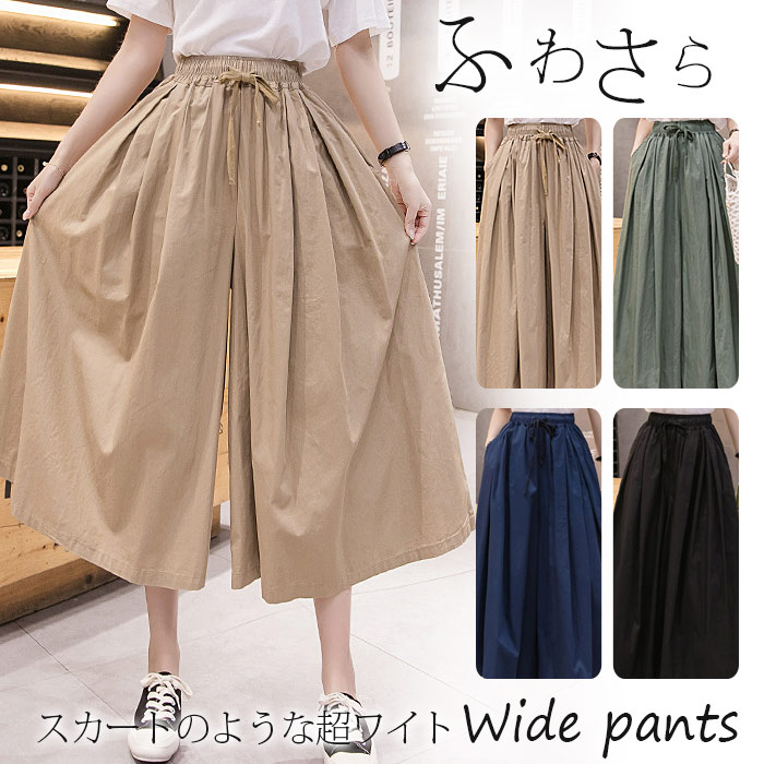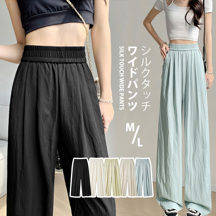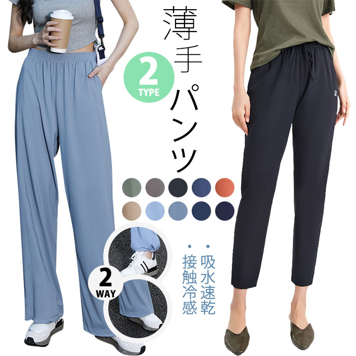 涼しい 新カラータイプ登場 春 夏 ワイドパンツ 体型カバー 縦ライン 高見え おしゃれ かわいい 伸縮性 上着 吸汗 速乾 弾力 快適 通気性 さらてろ プレゼント