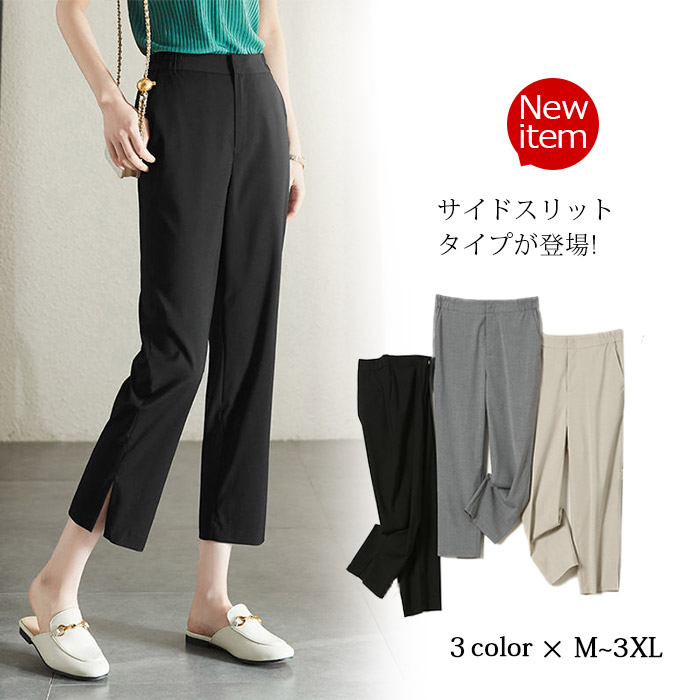薄くて柔らかな麻混素材で穿き心地よい おしゃれ スリットパンツ きれいめ 40代 30代 20代 春夏秋に対応